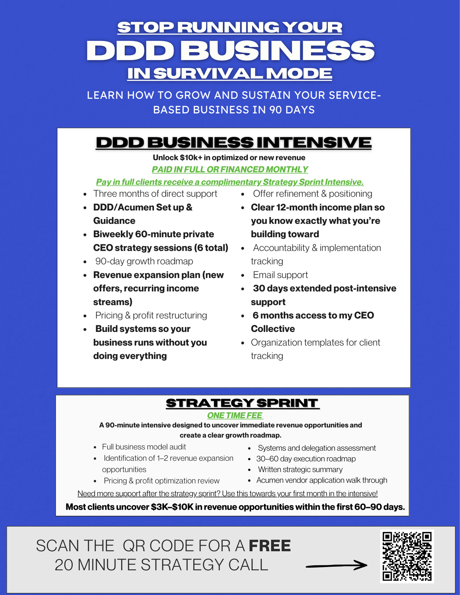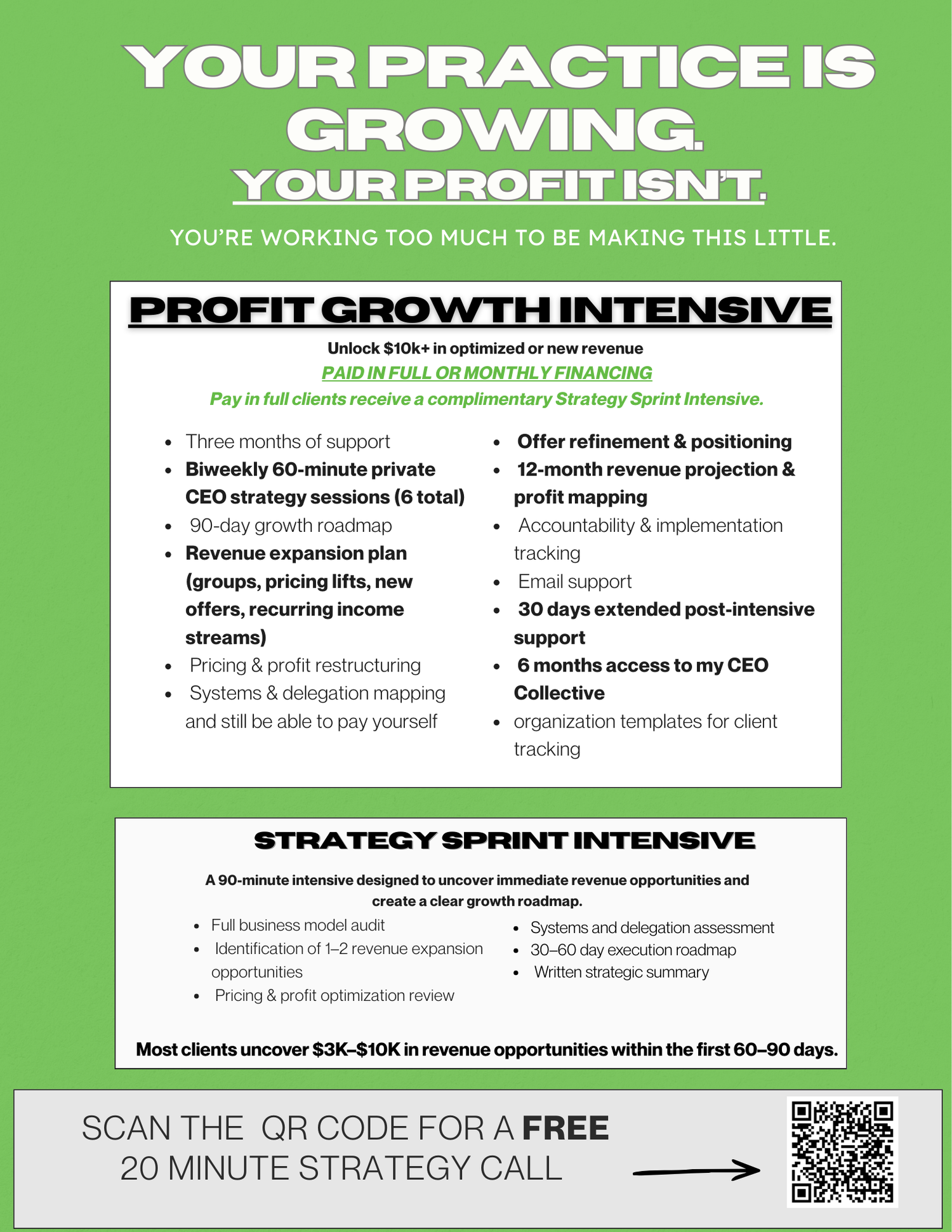 Let's find the bottle neck of your business, where you can grow, and develop more avenues of income. Book a FREE 20 minute Strategy Call with me by clicking the button below!